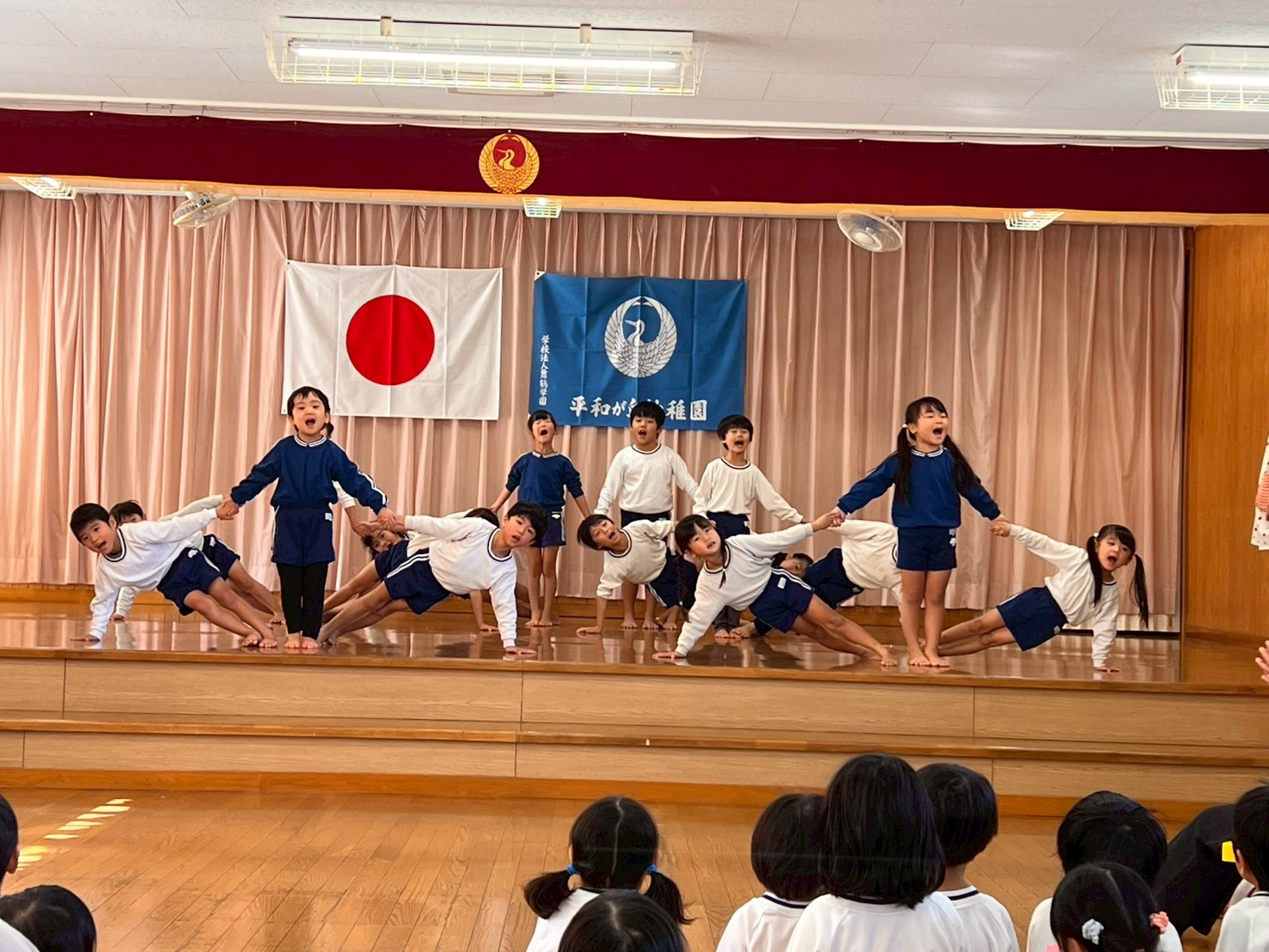 初めは緊張していた子ども達、歌やダンス、組体操などを披露し、おじいちゃん、おばあちゃん達から大きな拍手をもらいました。