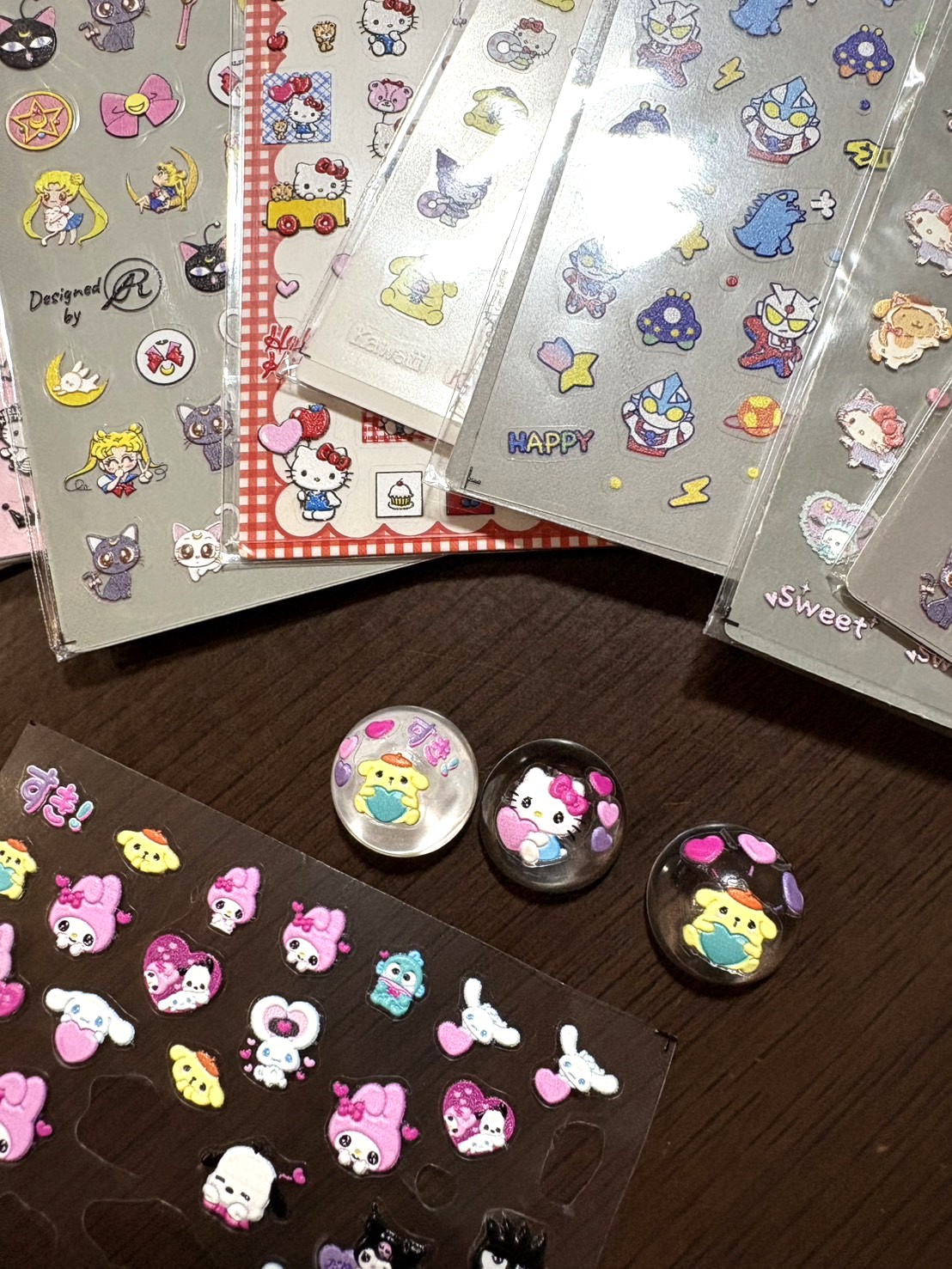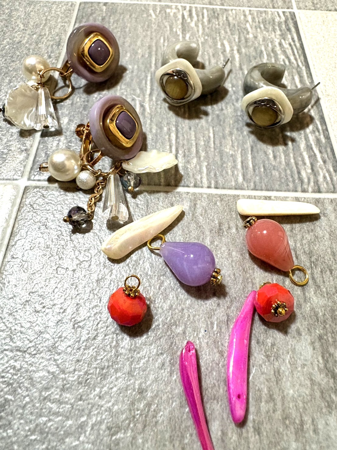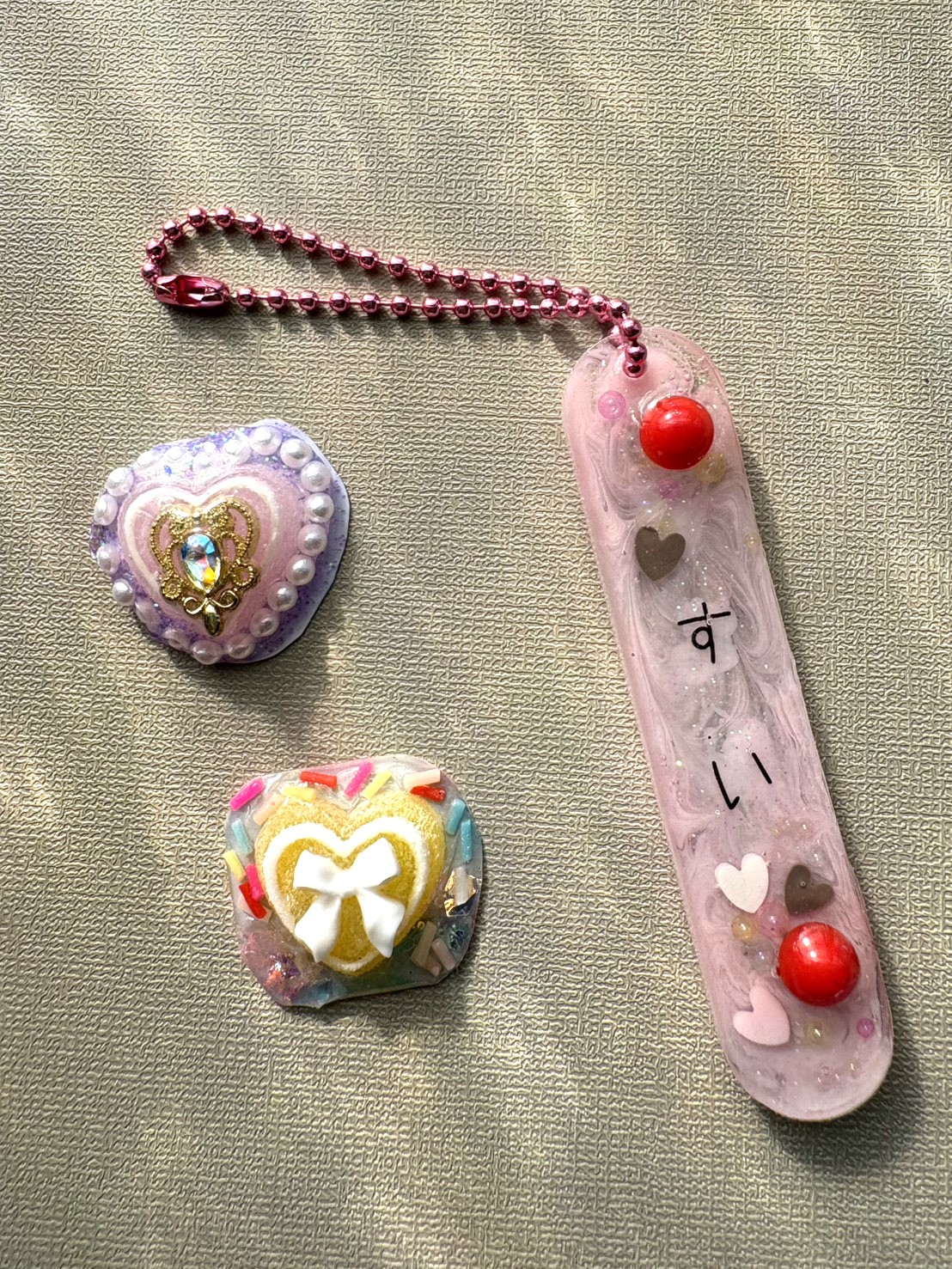 レジンを使った小物を(イヤリング・キーホルダー・シール)作りました😆